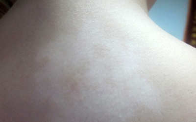 白癜风在发病初期时常为点状或片状色素减退斑,一片或数片,因黑色素未完全脱失,呈淡白色,与正常皮肤分界不是很清楚,皮损处很光滑,没有鳞屑和萎缩的现象发生,患处不会有明显不适,随着黑色素的脱失,白斑会逐渐扩散变大,颜色也会加深,变为云白色、瓷白色等,家长们需引起重视。(点我,查看小孩后背有白斑的图片)