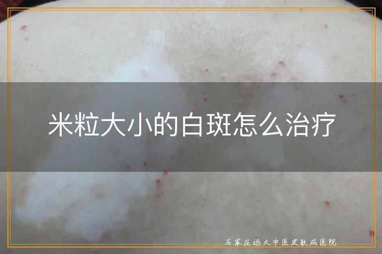米粒大小的白斑怎么治疗?病情的发生时期不一样,对症治疗:白癜风治疗方法的选择与白癜风的发病原因、发病时期、白斑状态、患者体质等因素相关,其中诱发疾病的原因是治疗白癜风的方法选择的基础,只有确定了白癜风发病的根本原因,其治疗白癜风的方法才能起到对症治疗的作用。其次,白癜风的发病时期和白斑形态是治疗白斑的参考,也是十分重要的。在治疗过程中,患者还要保持一个良好的心情,日常生活要养成良好的生活习惯,只有综合治疗才能达到的目的,才能使病情有所康复。